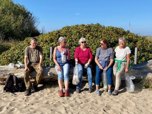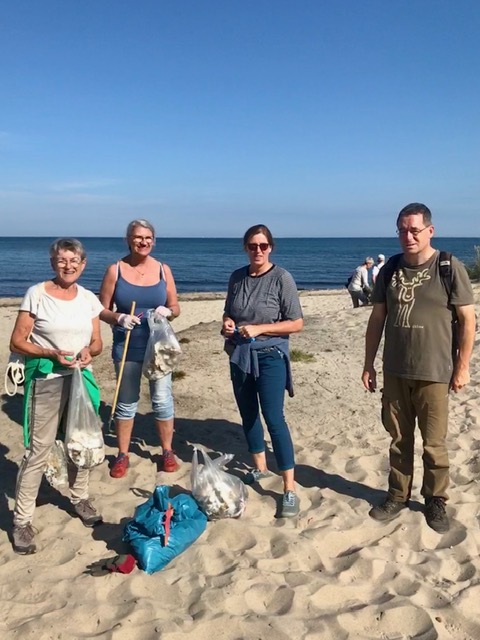 Ausgerüstet mit Zangen und Eimern ging es bei Sonnenschein an den Strand, durch die Dünen und durch das Stiftungsgebiet Richtung Naturschutzgebiet Rieden. Durch das jährliche Sammeln ist es schon erheblich weniger Müll geworden. Jedoch haben die wilden Toiletten unglaublich zugenommen.