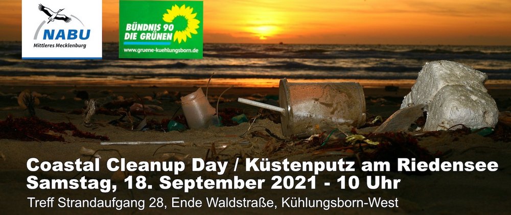Rund um den Globus starten mehr als einhunderttausend Umweltschützer zu Strand-Reinigungs-Aktionen. Beim Coastal Cleanup Day geht es darum, an den Stränden angeschwemmten und von Menschen zurückgelassenen Müll zu sammeln und zu entsorgen. Der NABU Mittleres Mecklenburg e.V. und die GRÜNEN Kühlungsborn rufen dazu auf, sich am 18. September zu beteiligen.
