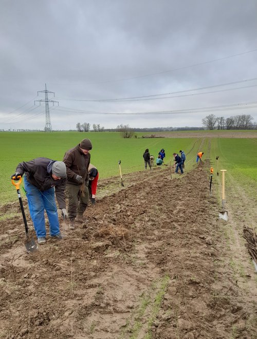 Die Hecken dienen zukünftig dem Biotopverbund in der Gemarkung zwischen den Feldern und Feuchtflächen. Gepflanzt werden heimische, standorttypische Arten wie Wildrosen, Weißdorn, Waldhasel, Eberesche und Schlehe aber auch Wildapfel und Wildbirne. Zur Erhöhung der Vielfalt in der Kulturlandschaft können später noch Strukturelemente wie Feldstein- und Todholzhaufen eingebracht werden. Die zukünftigen Feld- oder auch Grenzhecken verbinden Feuchtbiotope mit kleinen Waldstücken. So können Insekten und Niederwild ihre Standorte wechseln, unter dem Schutz von Stauden in Randstreifen, Kleingehölzen und Schirmbäumen. Wüschen wir der Aktion Erfolg und weitere Nachahmer.