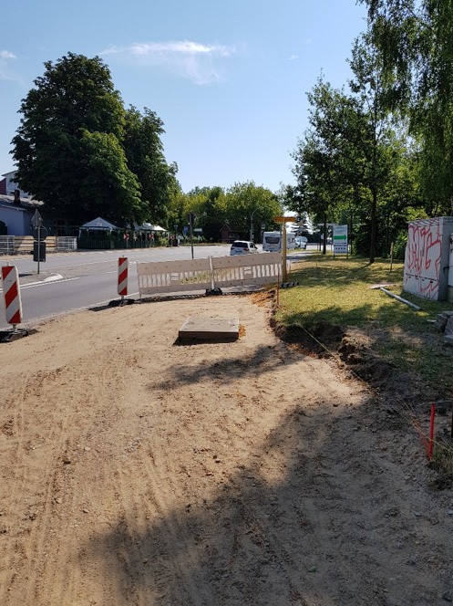 Noch endet der Weg an einer Barriere, aber bald (hoffentlich) wird er befestigt und mit dem bereits vorhandenen Radweg vor der Ampel an der Kreuzung verbunden – eine große Erleichterung für radelnde Einwohner und Touristen.