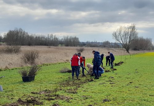 Gemeinsam und in der Freizeit haben wir mit Spaß und bei schönstem Wetter eine Aktion in unserer Kulturlandschaft unterstützt. Wir stehen für Naturschutz vor Ort und helfen daher auch als Komunalis bei der Wiedereinrichtung landschaftlicher Strukturen und hier der Anpflanzung einer Wildhecke. Die Pflanzung und Anwuchspflege wurde in Eigenleistung erbracht. Für die Pflanzung standen ehrenamtliche Bündnis-Grüne Komunalis und BUND-Mitglieder der Region bereit. Im Frühjahr wurde gegossen und Beikraut entfernt.