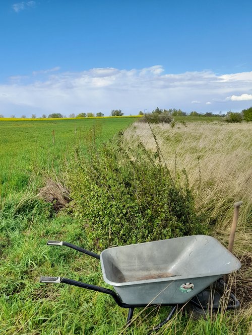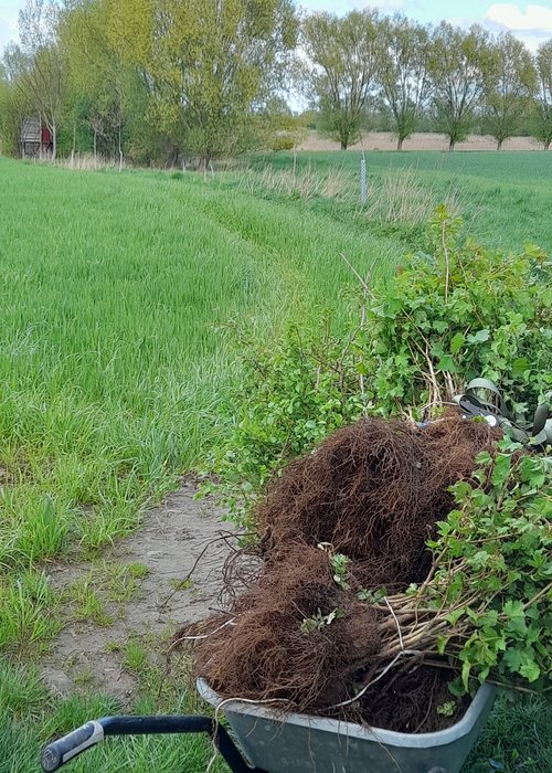 Wer kann und mit machen will, bitte Gartensachen und Stiefel mit bringen, der Bereich ist teilweise uneben und feucht, wir laufen an der Ackerkante dorthin.